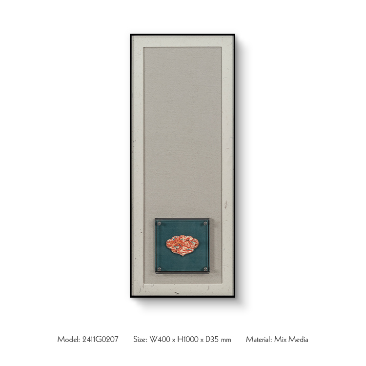 1. Craft: Wood Carving + Bamboo Silk Cloth + Crack Texture Effect+ Resin + Acrylic Grinding + Nail + Linen Base